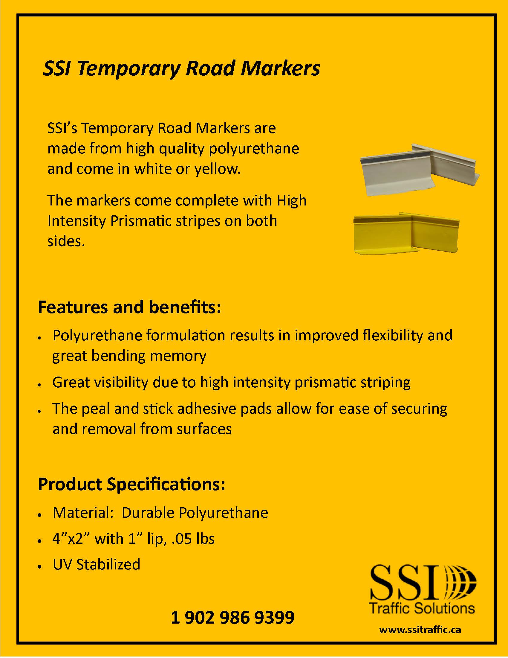 SSI’s Temporary Road Markers are manufactured from high quality materials, and are extremely durable in a variety of weather conditions. These markers come in both white and yellow, and include high intensity reflective striping on both sides.