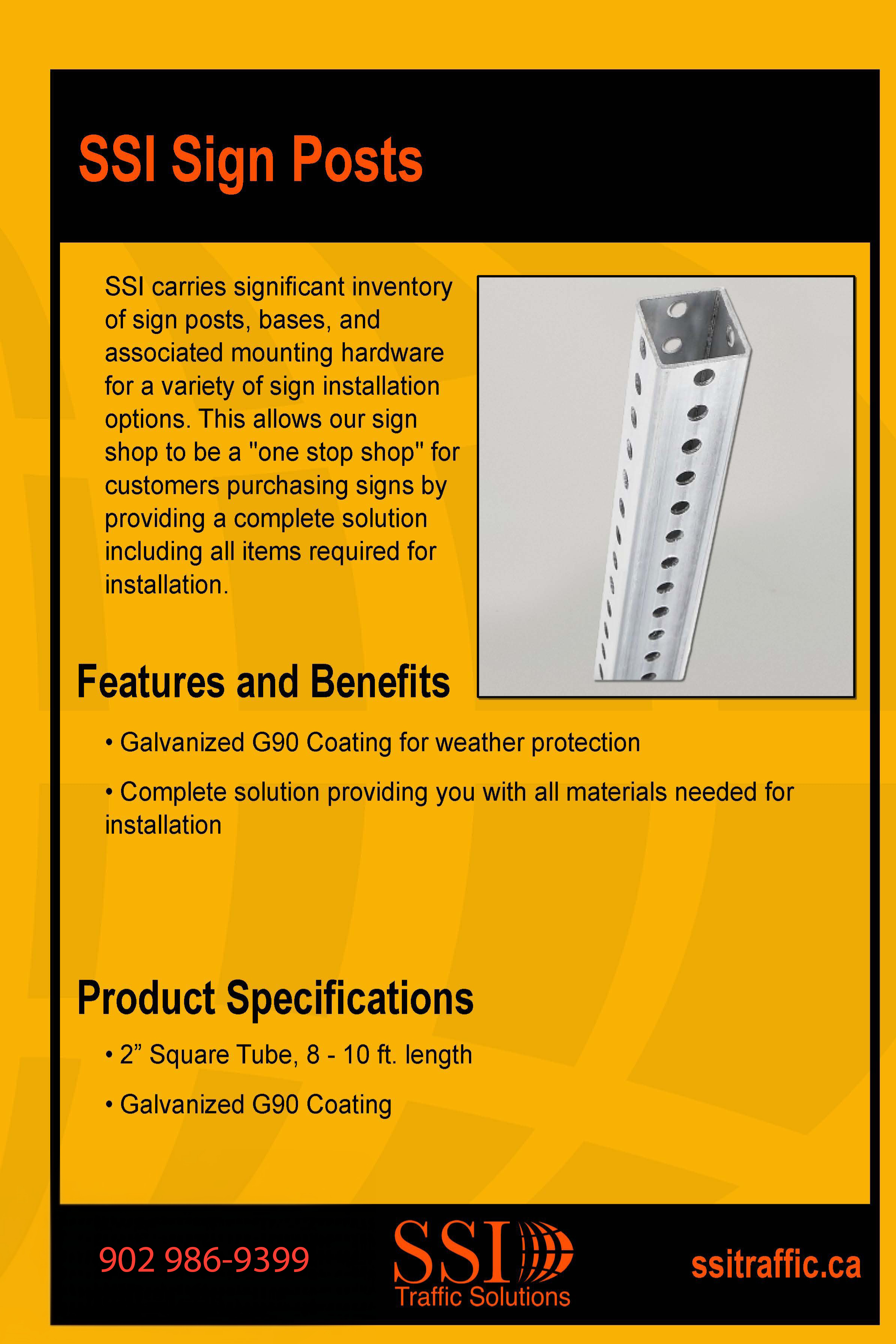 SSI carries significant inventory of sign posts, bases, and associated mounting hardware for a variety of sign installation options. This allows our sign shop to be a “one stop shop” for customers purchasing signs by providing a complete solution including all items required for installation.